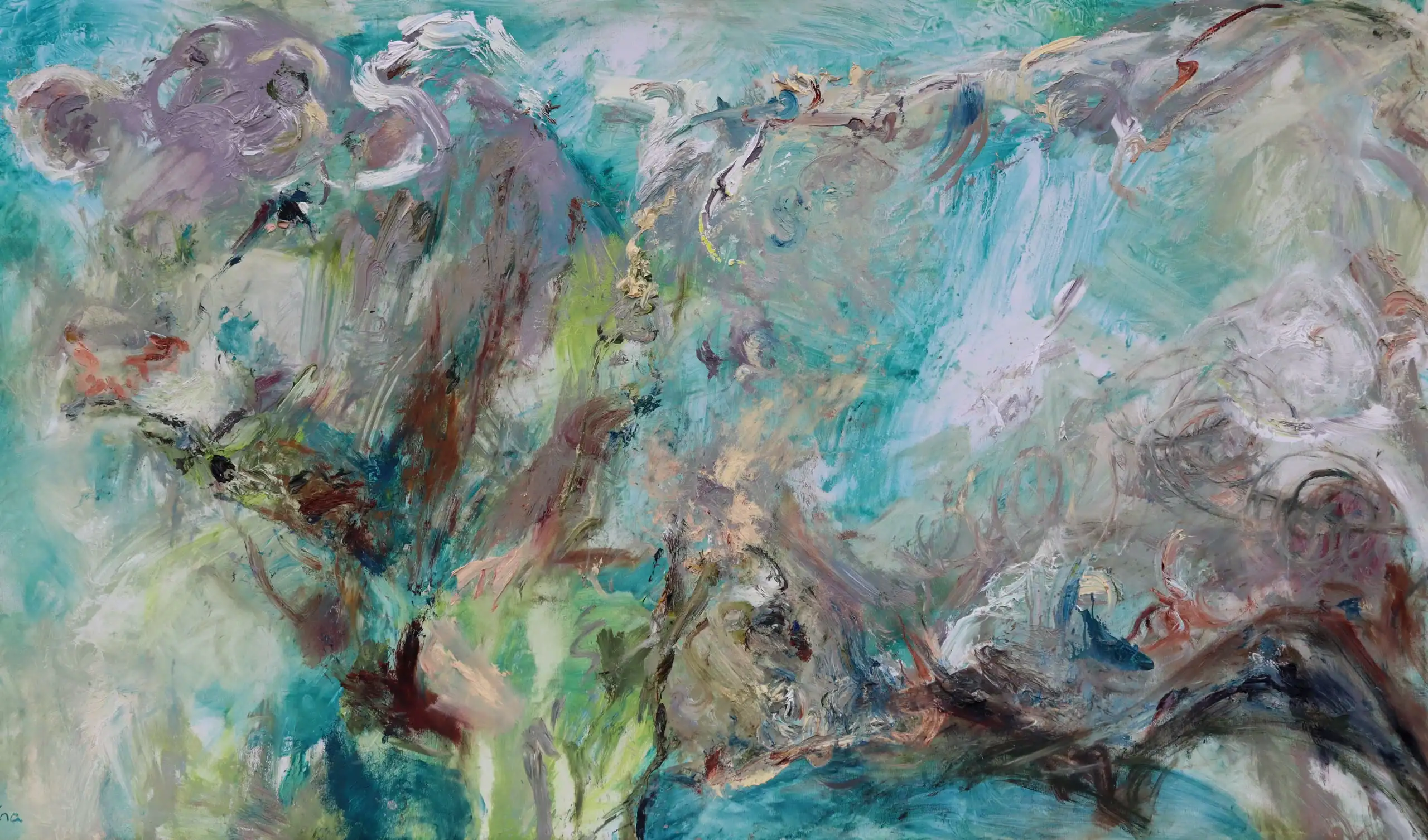 The viewer’s eye moves across the canvas from left to right, taking in its wide span.